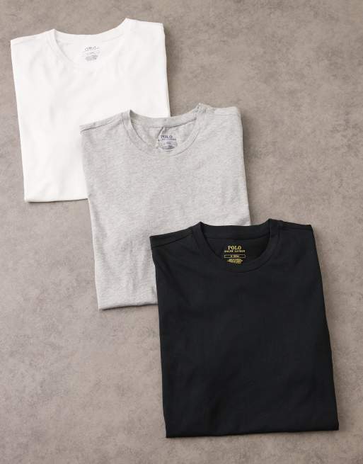 Polo Ralph Lauren 3 pack of icon logo lounge t-shirt in white/black/grey marl