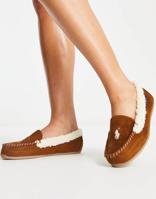 Polo Ralph Lauren Declan moccasin slippers in brown and cream