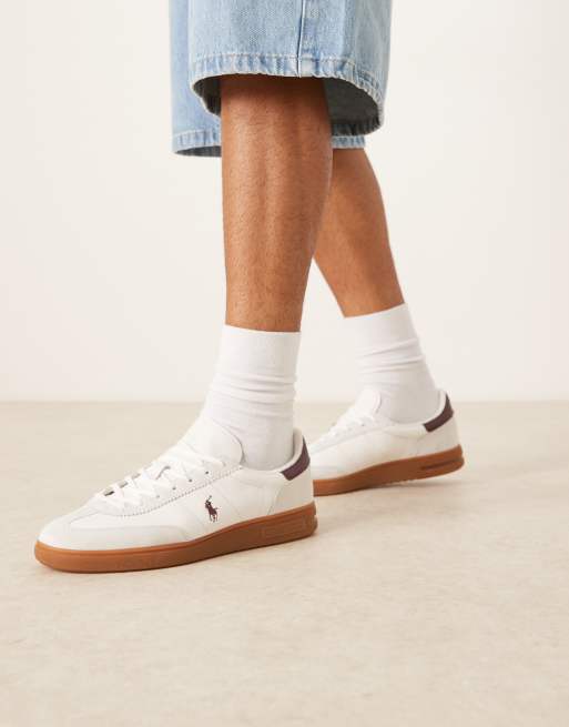 Polo Ralph Lauren gumsole leather sneakers in white and burgundy