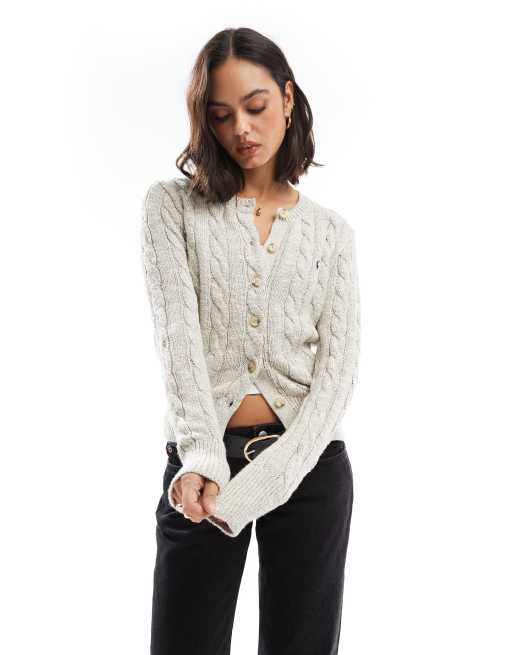Polo Ralph Lauren icon logo cotton cable knit cardigan in cream