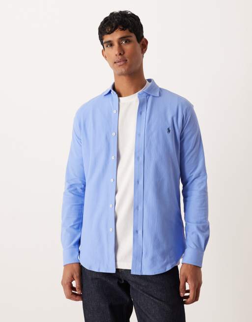 Polo Ralph Lauren icon logo honeycomb cotton jersey shirt in light blue