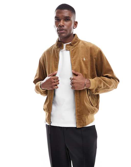 Polo Ralph Lauren icon logo lined cord harrington jacket in tan