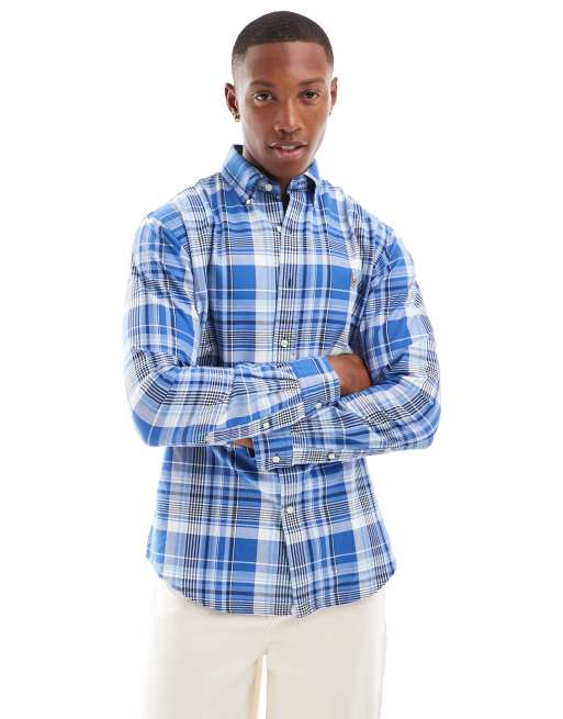 Polo Ralph Lauren icon logo multi check oxford shirt custom fit in blue