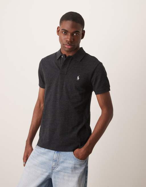 Polo Ralph Lauren icon logo slim fit pique polo shirt in black marl
