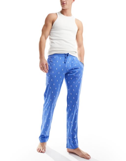 Polo Ralph Lauren Loungewear trackies with all over pony logo in light blue