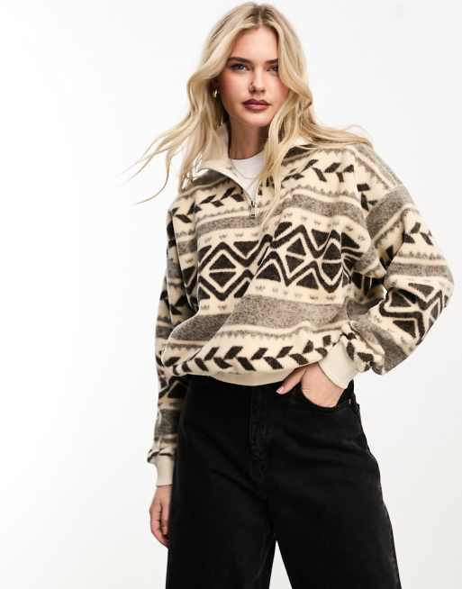 Polo Ralph Lauren polar fleece pattern half zip sweatshirt in brown