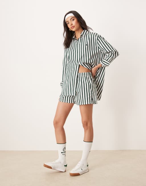 Polo Ralph Lauren Wimbledon capsule logo stripe shorts in dark green (part of a set)