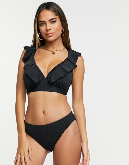 Pour Moi Fuller Bust Space frill bikini top and bottom in black
