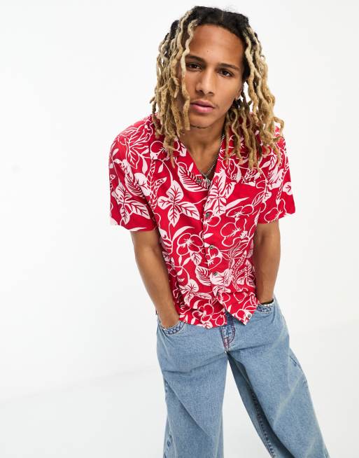 Pretty Green x Elvis leaf shirt in red with all over print