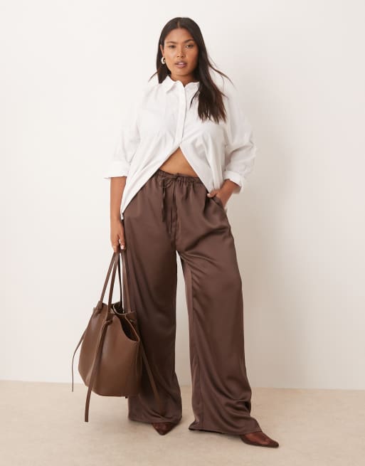 Pretty Lavish Curve satin tie waist pants in chocolate brown