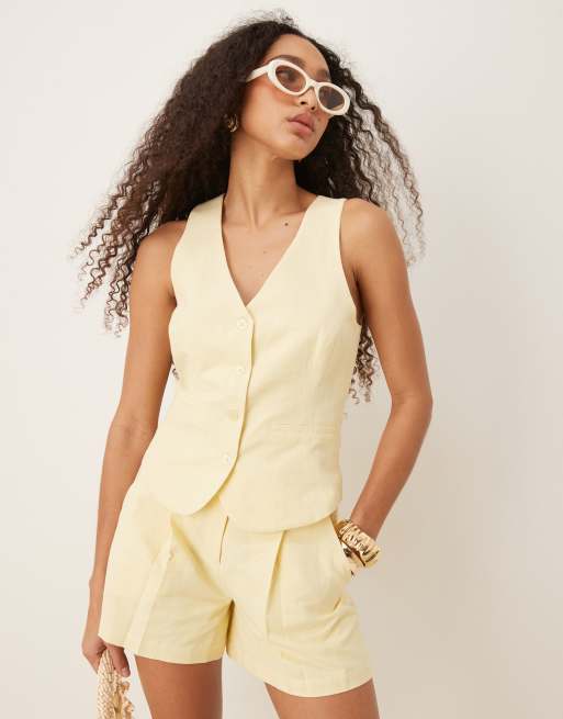 Pretty Lavish halterneck linen waistcoat in lemon (part of a set)