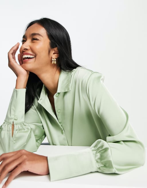 Pretty Lavish relaxed satin pants set in mint