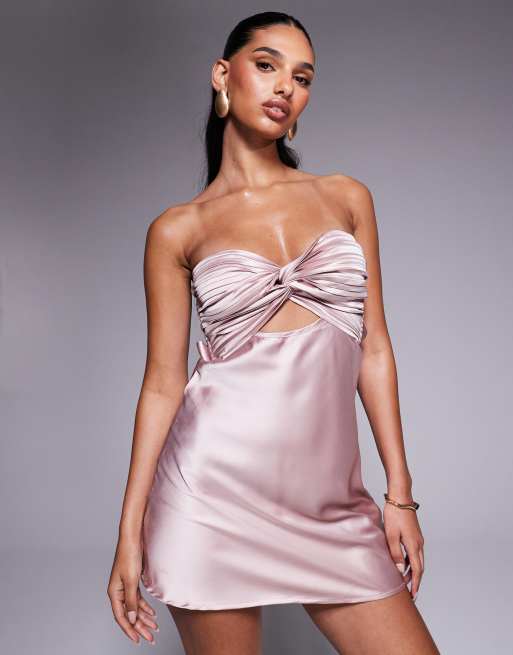 Princess Polly Shellie satin bandeau twist-front open-back mini dress in pink