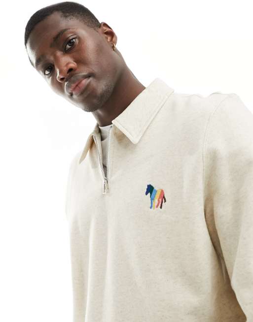 Paul Smith half zip collared sweatshirt with zebra logo in cream