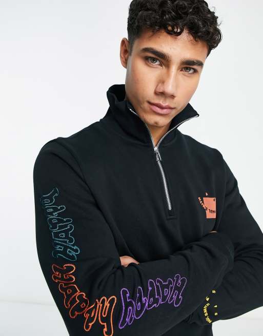 PS Paul Smith 1/4 zip sweatshirt in black with happy face box scattered graphics