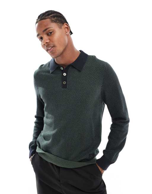 PS Paul Smith long sleeve knit polo with logo in khaki