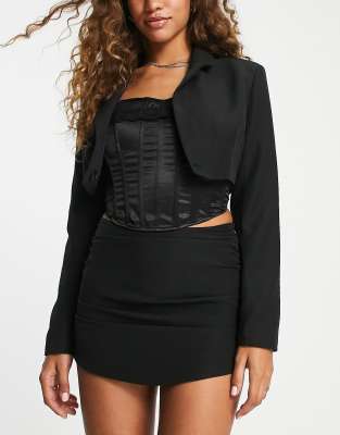 Public Desire curved micro mini skirt in black (part of a set)