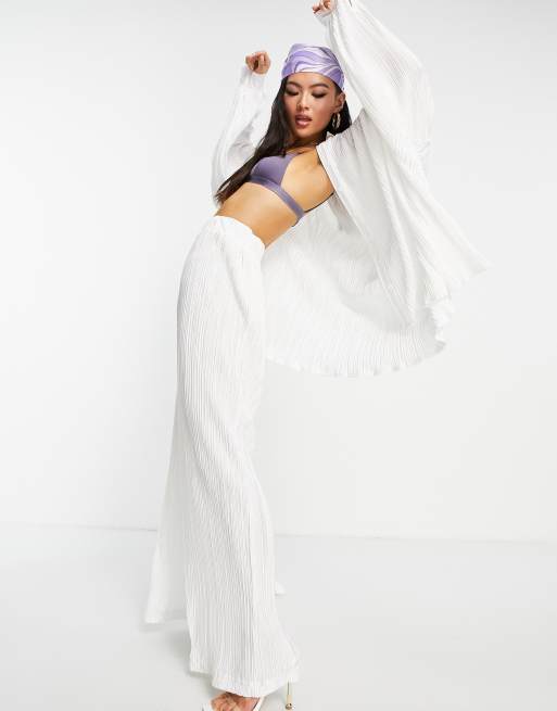 Public Desire plisse wide leg pants in ecru (Part of a co-ord)