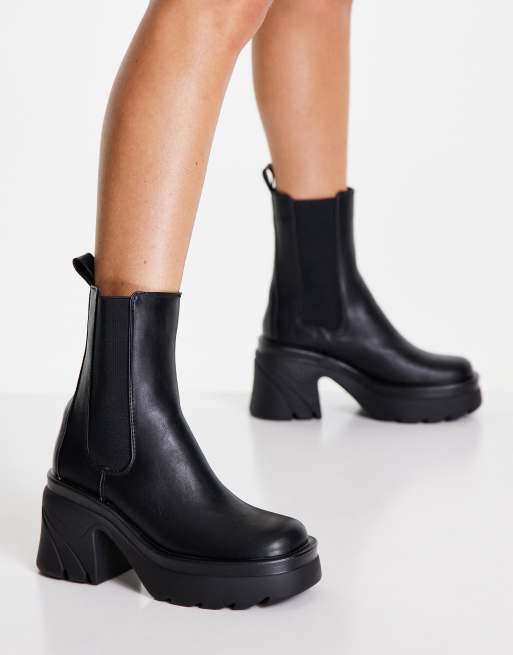 Public Desire Stepup mid heel chunky ankle boots in black