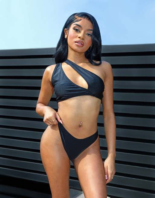 Public Desire X Kenza keyhole one-shoulder bikini top in black