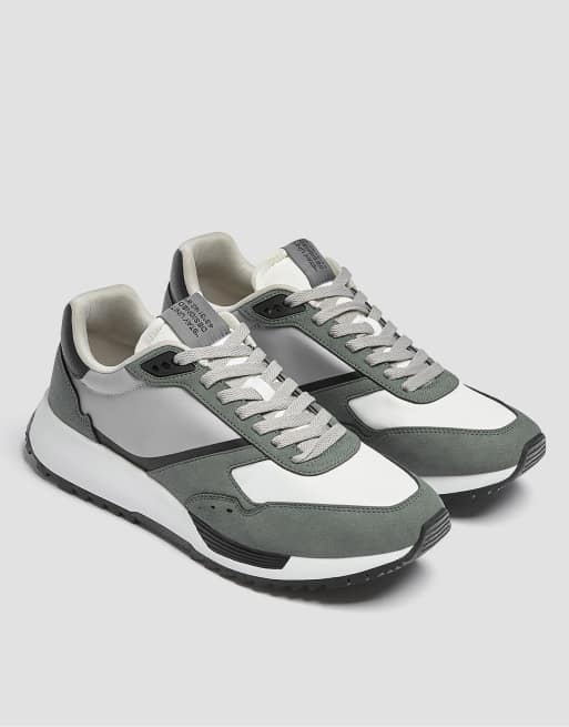 Pull&Bear contrast chunky runner sneakers in dark green