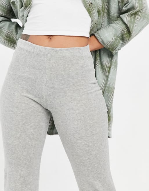 Pull&Bear cropped hoodie and wide leg flare pants co-ord in grey