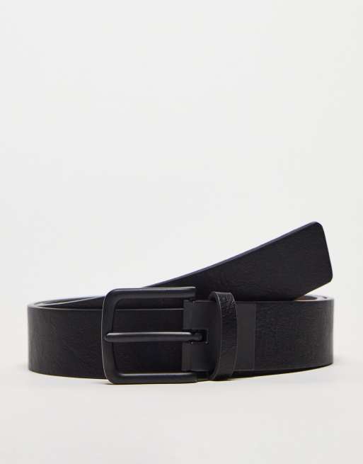 Pull&Bear faux leather reversible belt in black/brown