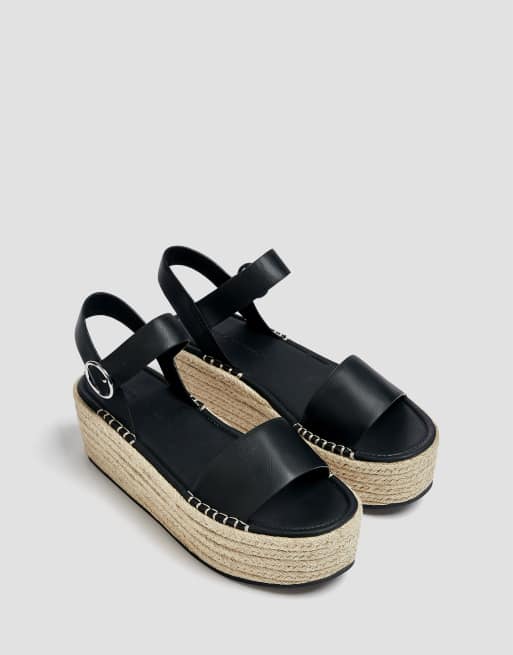 Pull&Bear flatform espadrille sandals in black