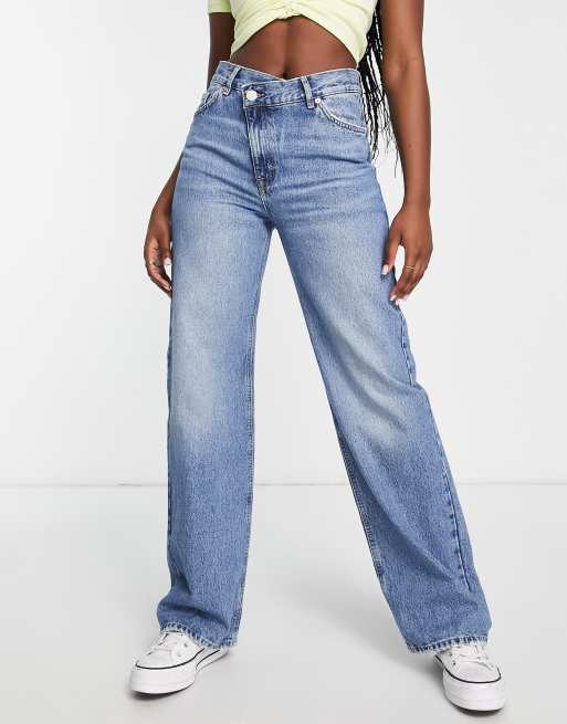 Pull&Bear high waisted jeans with crossover waist in light blue