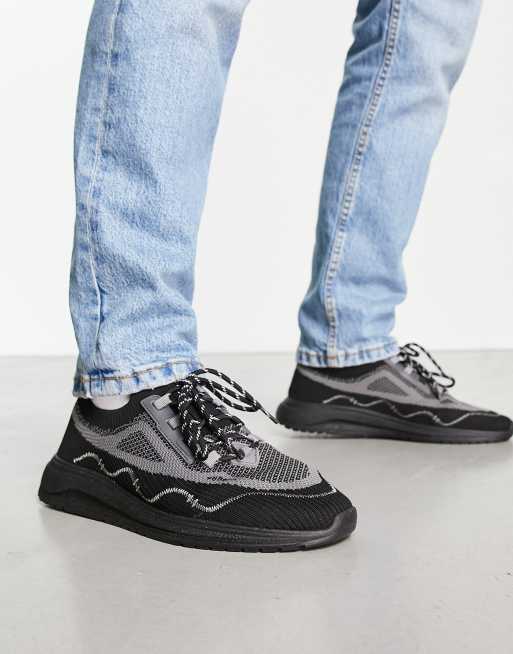 Pull&Bear knit racer sneakers in black