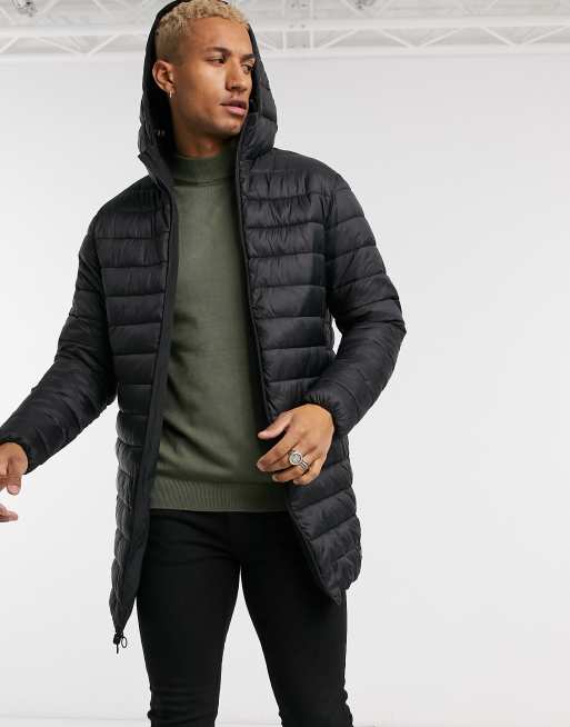Pull&Bear lightweight padded reversible parka in black