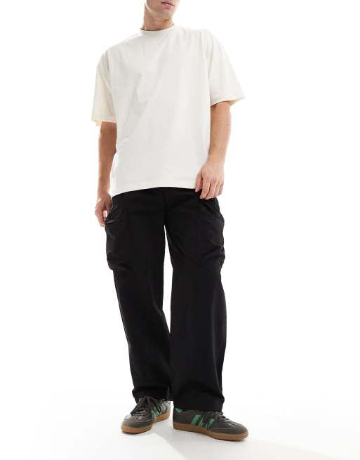Pull&Bear nylon parachute cargo pants in black
