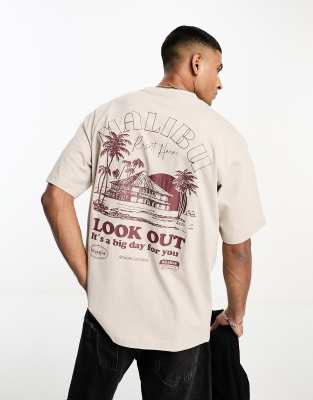 Pull&Bear printed malibu t-shirt in tan