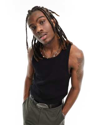 Pull&Bear ribbed singlet in black