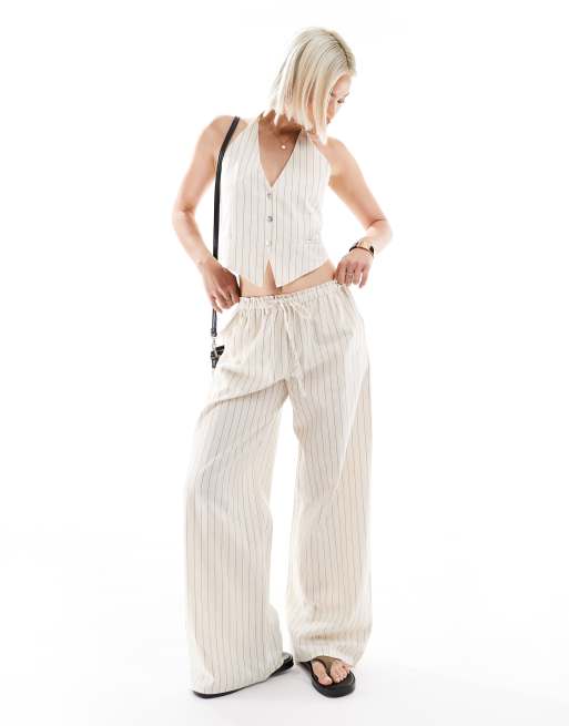 Pull&Bear rustic wide leg pants in ecru (part of a set)