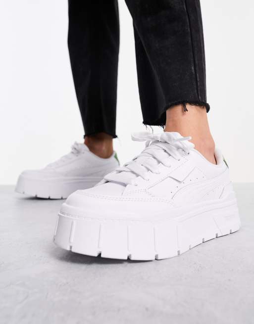 PUMA Mayze Stack sneakers in white & green
