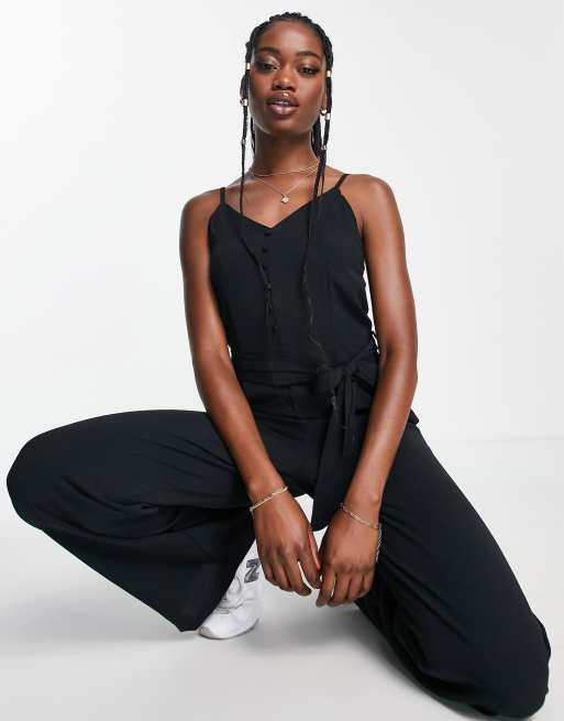 QED London cami strap button front jumpsuit in black