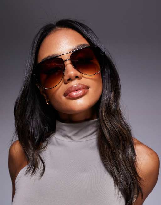Quay High Key metal aviator sunglasses in black with brown yellow gradient lens