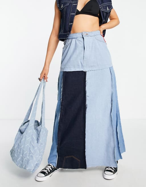 Ragyard x Hotfix denim maxi skirt in multi patchwork