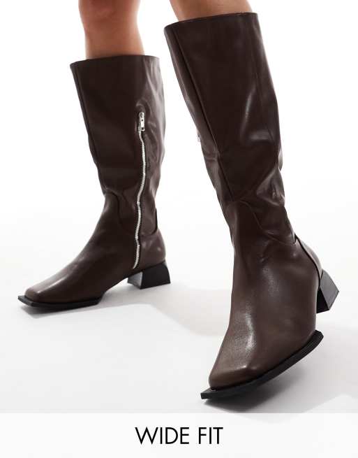 RAID Wide Fit Elixir knee boots with square toe in brown