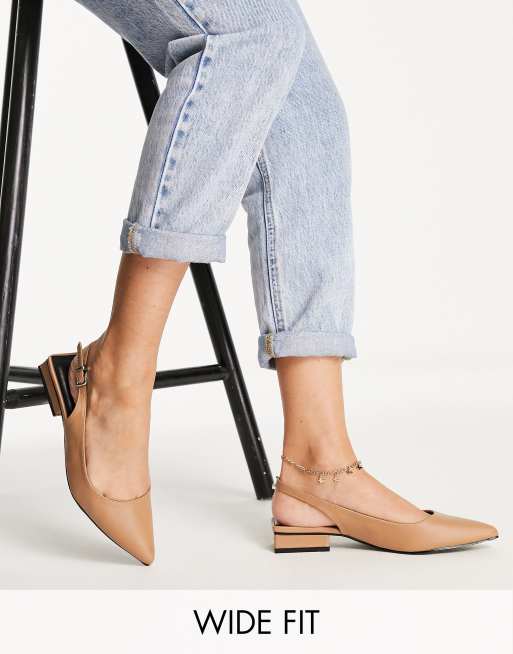 RAID Wide Fit Kinjal sling back flat shoes in camel