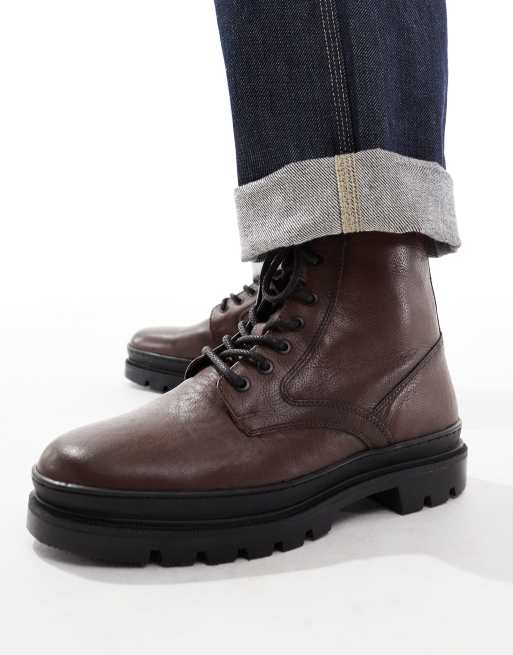 Red Tape chunky sole lace up boots in brown leather