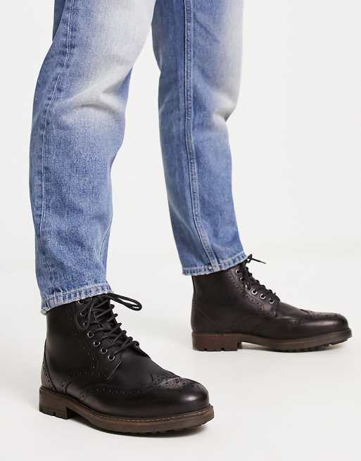 Red Tape lace up brogue boots in black leather