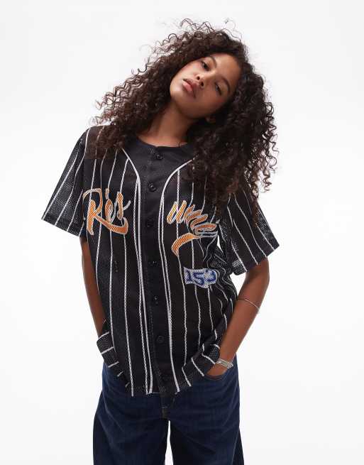 Resume relaxed oversized baseball style shirt in stripe with logo