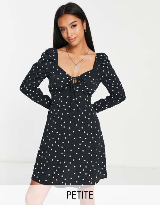 River Island Petite tie front mini dress in black
