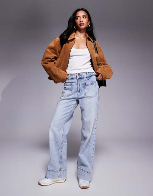 River Island Petite wide leg jeans in lightwash blue