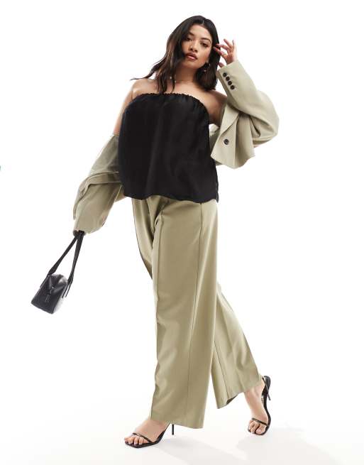 River Island Plus satin bandeau top in black