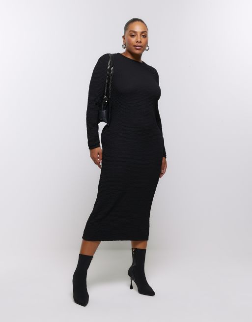 River Island Plus textured column midi dress in black