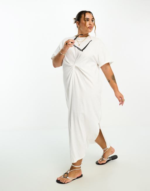 River Island Plus twist front midi t-shirt dress in white