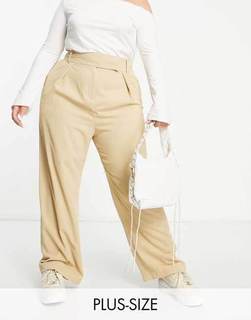 River Island Plus wide leg tailored dad pants in beige